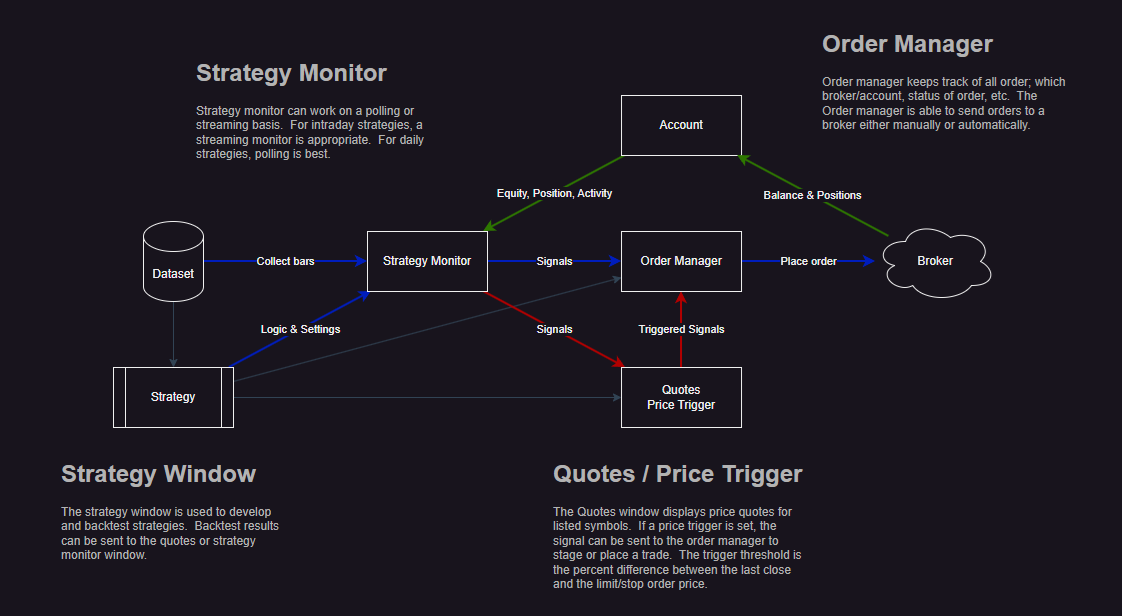 Stage: Sends signals to the Order Manager for review and manual placement with the broker.