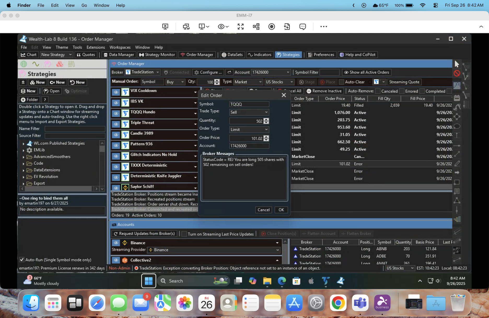 I am using Tradestation as the broker.