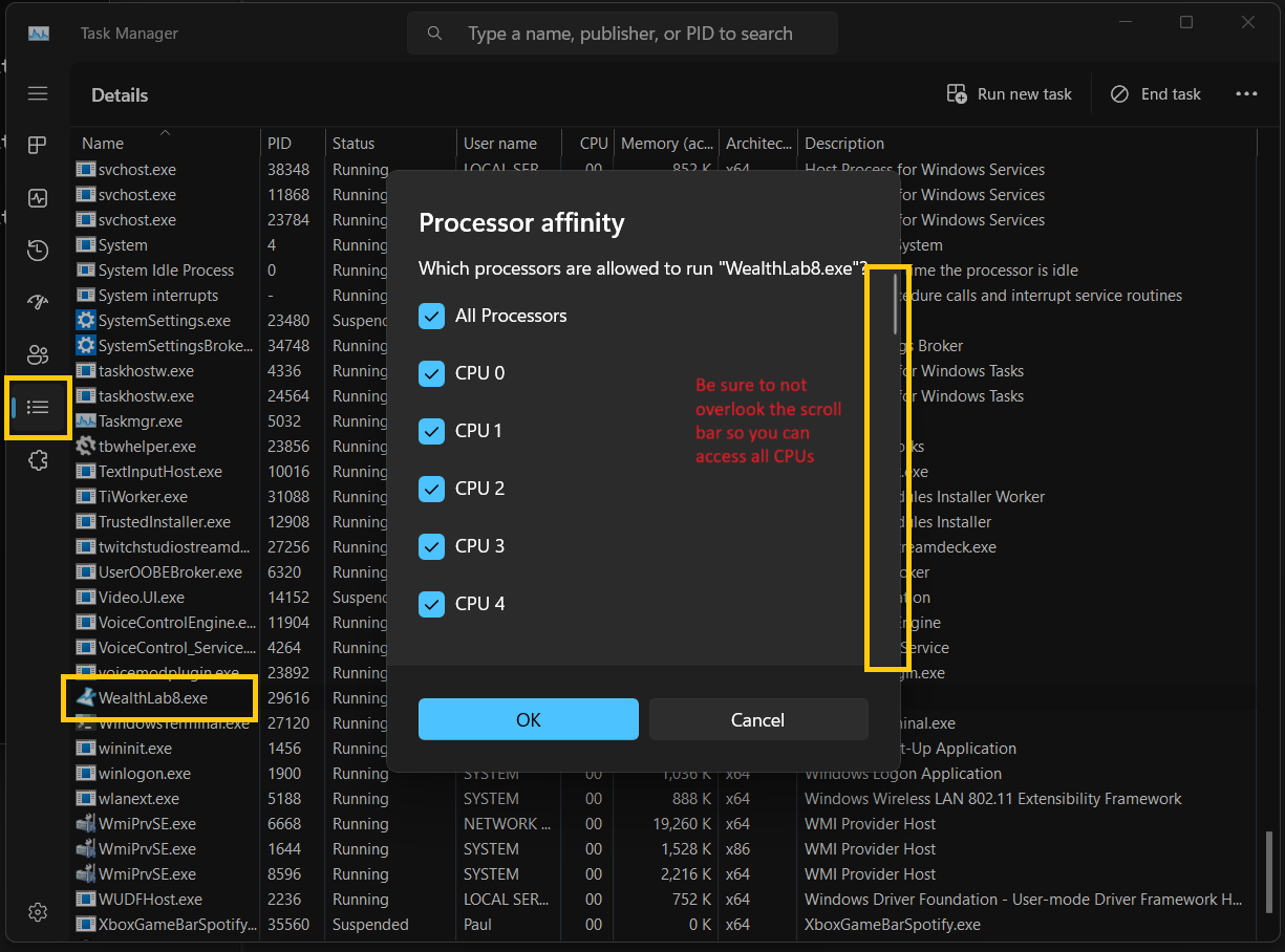 In Task Manager, Right-click on WealthLab.exe and select Set affinity