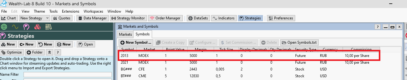 He set it up as a futures contract, but we can probably assume from the result that Futures Mode is not enabled in Preferences (F12) > Backtest > Other Settings.