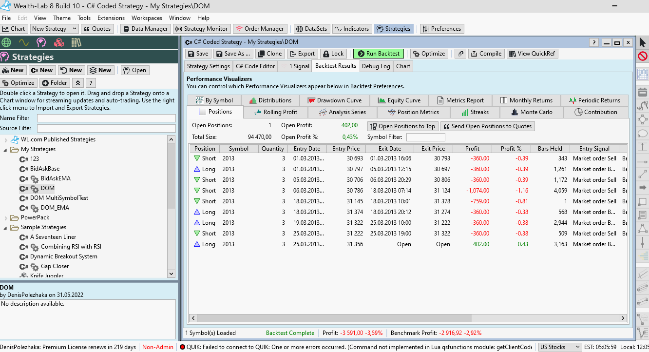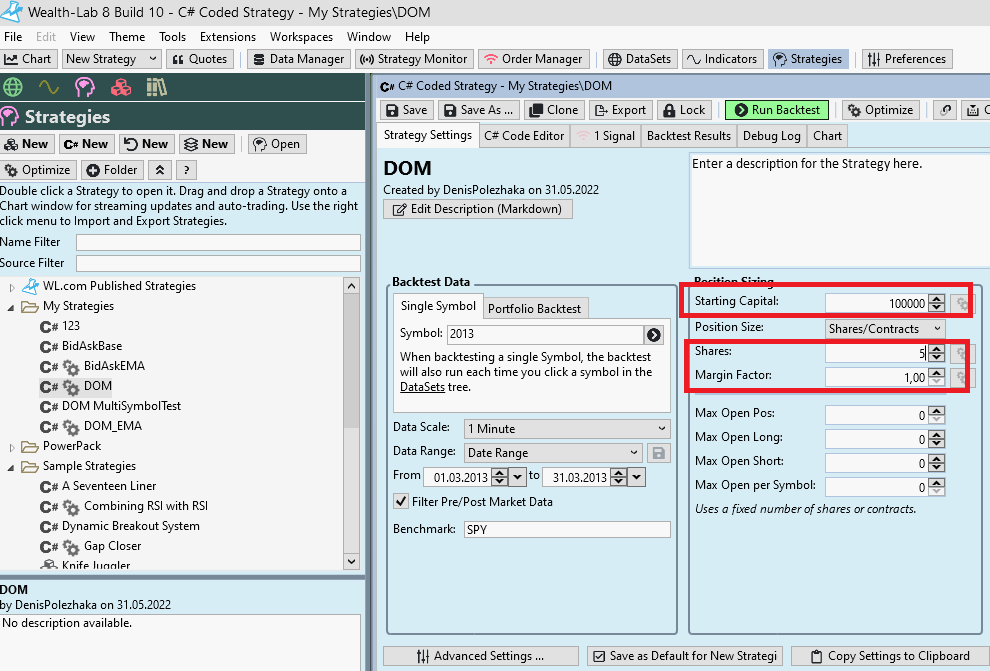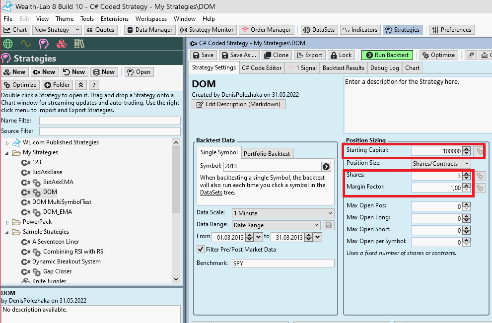 If the instrument's price is 30693, your starting capital is 100K and Margin Factor is 1.0, it's reasonable to expect to size the position at 3 contracts or less.