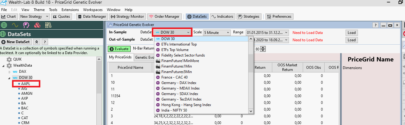 The In-Sample and Out-of-Sample fields allow you to select only a group of characters. For example, I can choose DOW30. I can't select a single AAPL character included in DOW30.