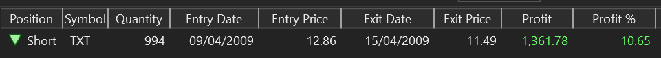 // Profit taking: 4% if (p.ProfitPctAsOf(idx) > 4.0) { ClosePosition(p, OrderType.MarketClose, 0.0, "Take Profit"); }