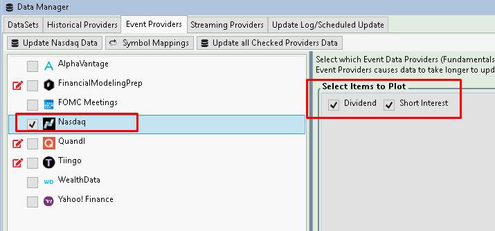 Previously I didn't press the "Update NASDAQ data" button, but the Event Provider was checked (otherwise there would not be any results at all).