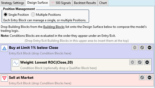 4. If you do as Glitch says, you'll have only 5 entry orders per day - only 5 trade candidates per day, ignoring the other 495. Whereas you're nearly sure to get 5 fills per day with 500 candidates, it's highly unlikely to get 5 fills each day if you choose "the 5" by any means - unless you have a crystal ball or purposely "peek" ahead with Strategy code.