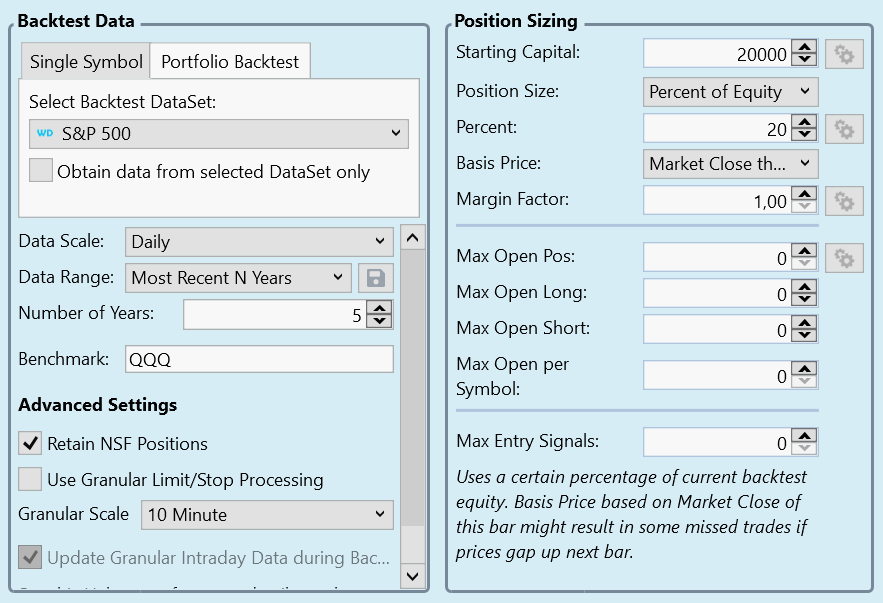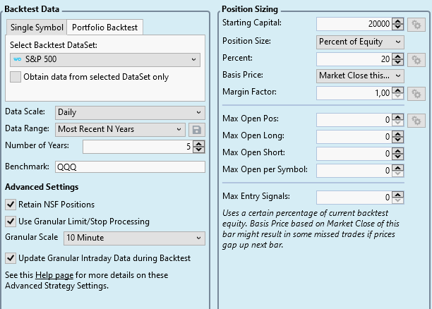 Q5: Assumed I use the same system, just that in the strategy settings I don't use the granular Limit/Stop processing.