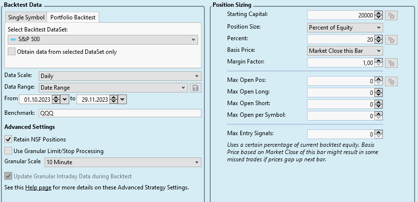 Backtest from 2023/10/01 until 2023/11/30 (same strategy settings, just the "to"-date one day later):