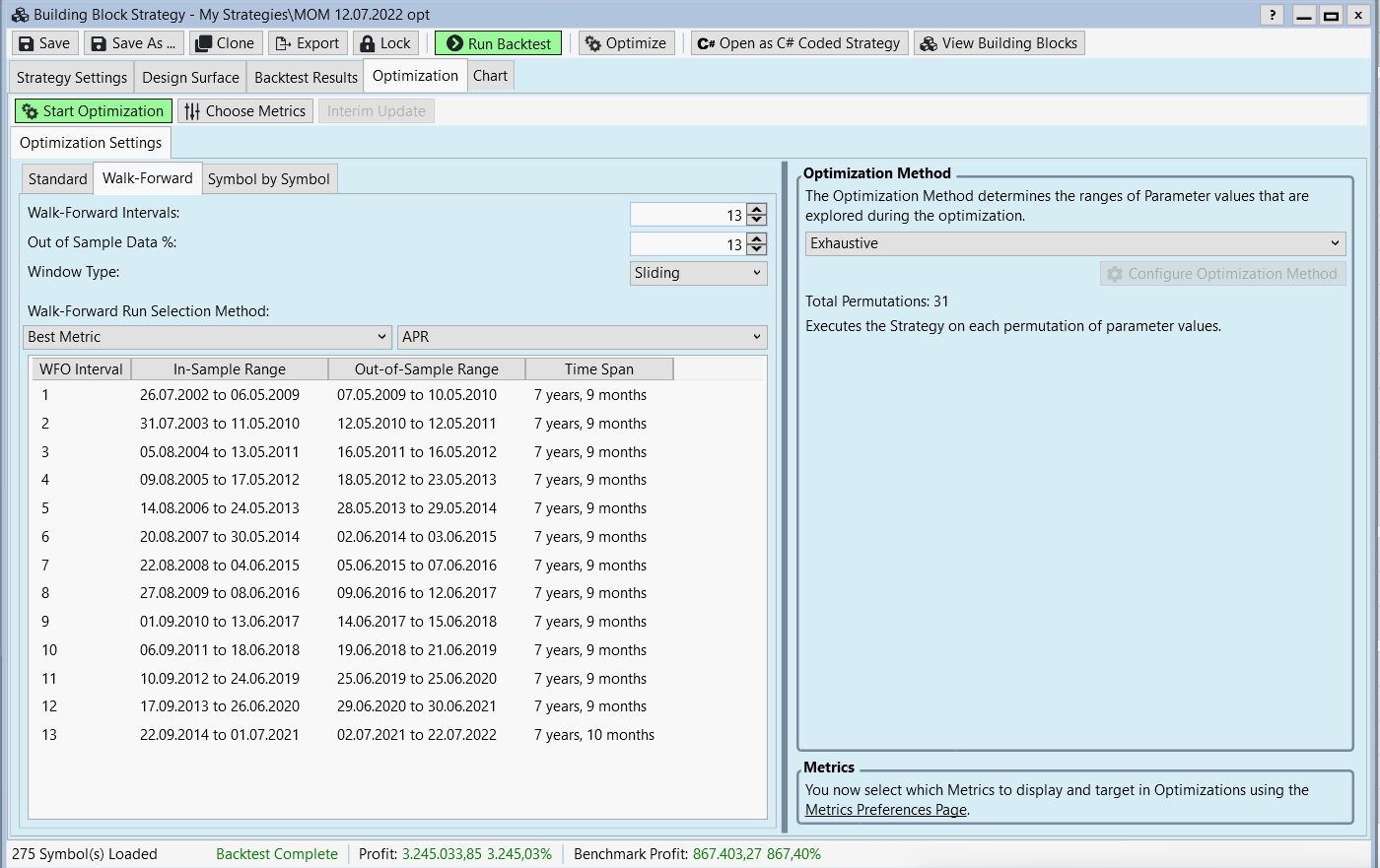- I ran: "Run Out-of-Sample Back-Test using WFO Parameters"