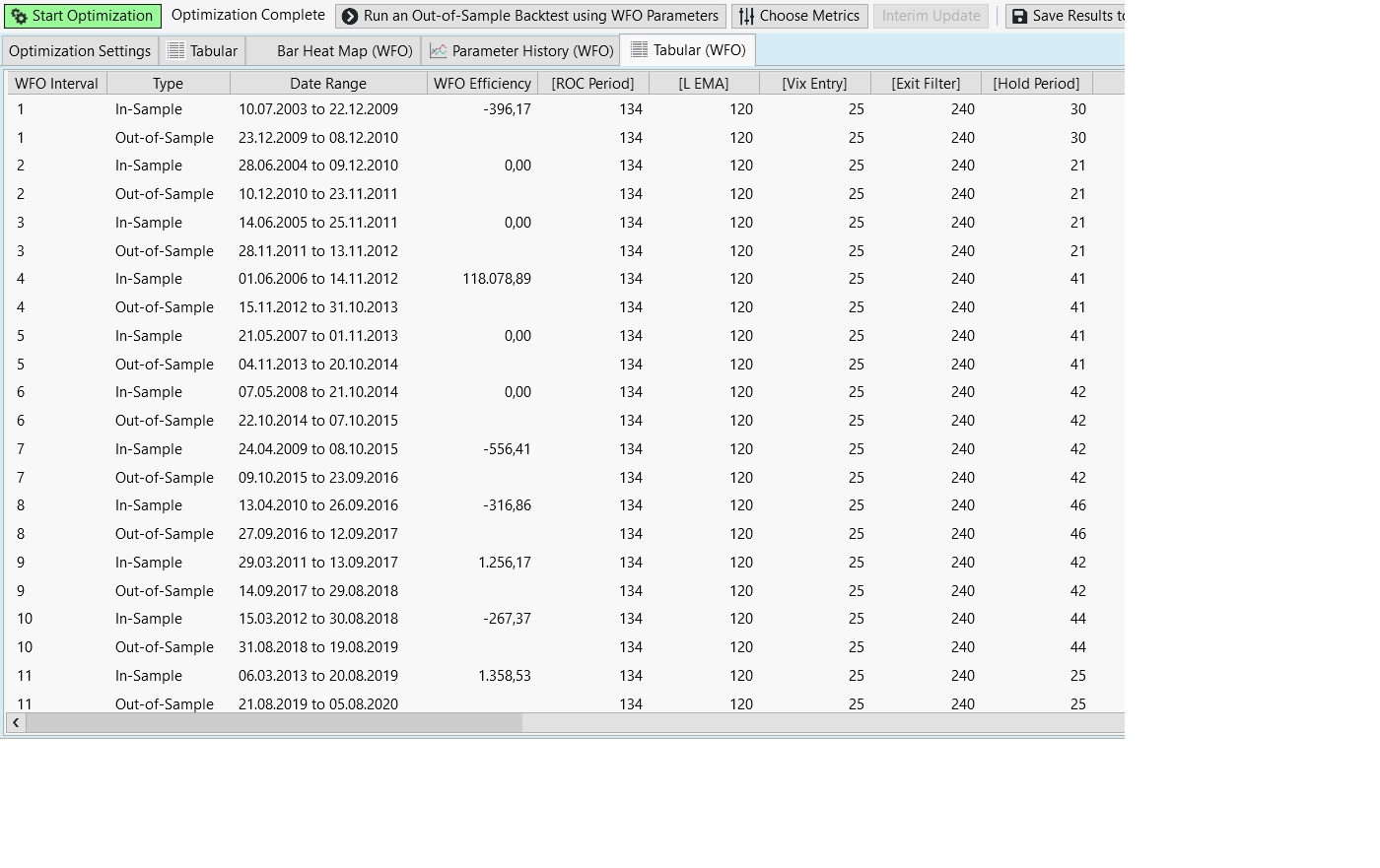 - in the "Back Test results - Positions" the holding period is not reflecting the WFO Results?