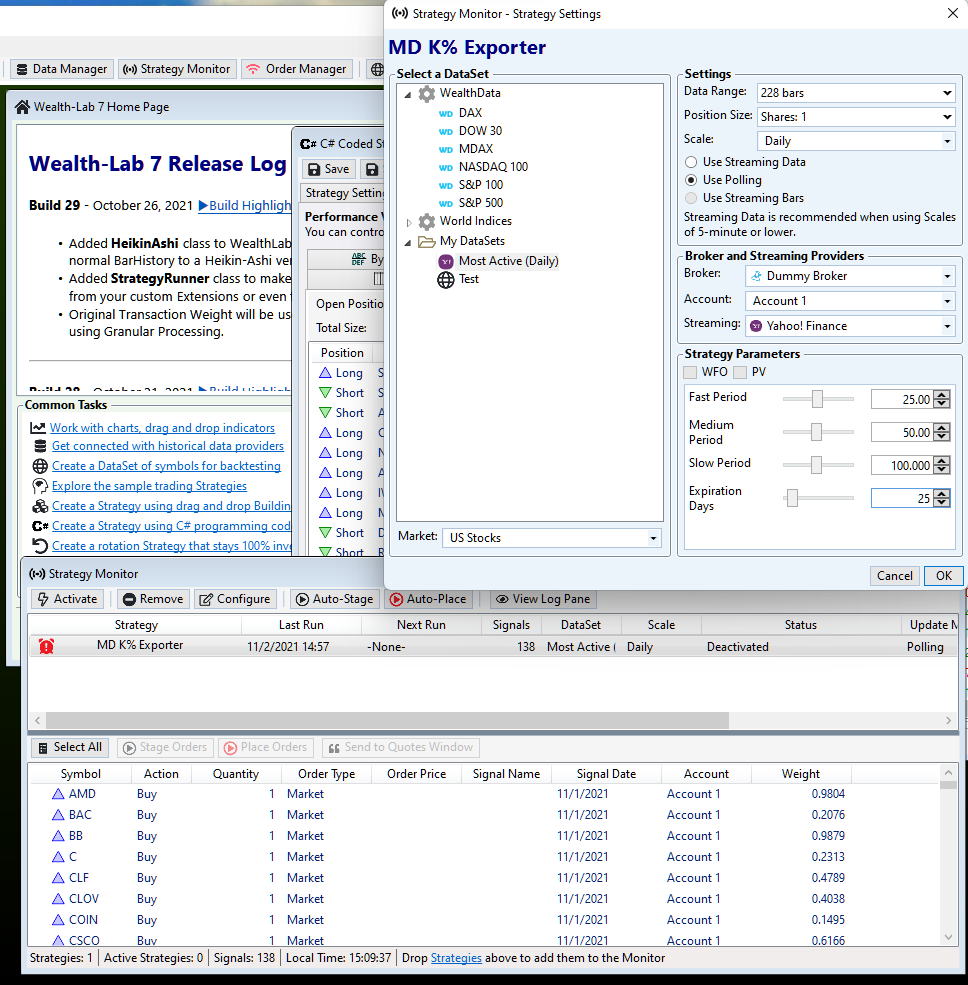 It looks like there are quite a few changes from V6 in the way to run daily strategies in V7 automatically in the Strategy Monitor. It appears that I can no longer set a time for a strategy to run. Rather I can only select how long after market close it will run. Further, the limit for after market close appears to be 5 hours (300 minutes.).
