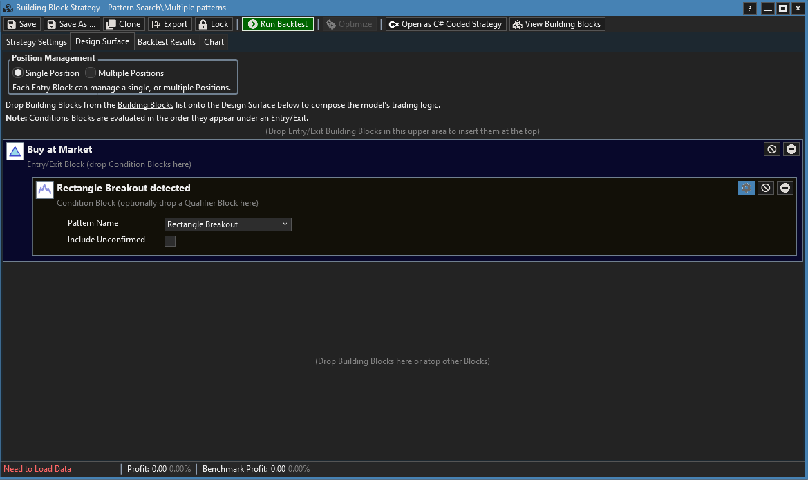 My goal is to screen patterns EOD. I create a building block strategy like this