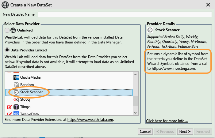 Well, kind of. Install the DataExtensions extension first, then restart WL, and open Data Manager and create a new dataset based on Stock Scanner. Follow the wizard to set it up. You might want to search the forum for Stock Scanner for more information first.