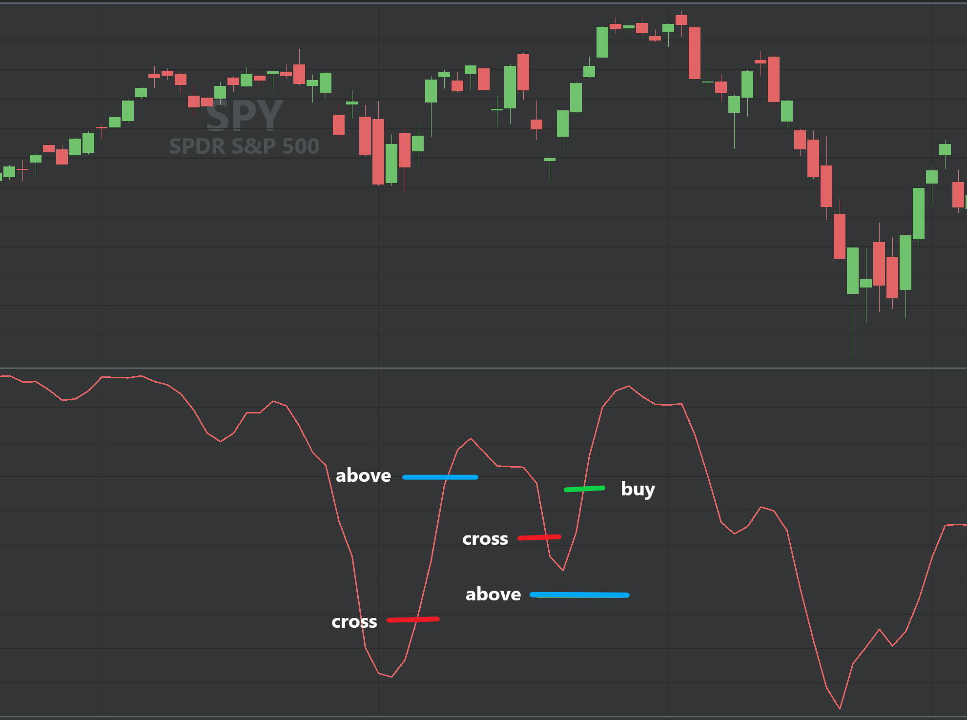 The idea is that you save the bar numbers where the event trigger. "Crosses" and "Turn Up/Down" events work fine with this methodology, but it falls apart when you add that "stays above" condition. It's not easy to work that into this hypothetical framework. It can be done, but it's hard to generalize.