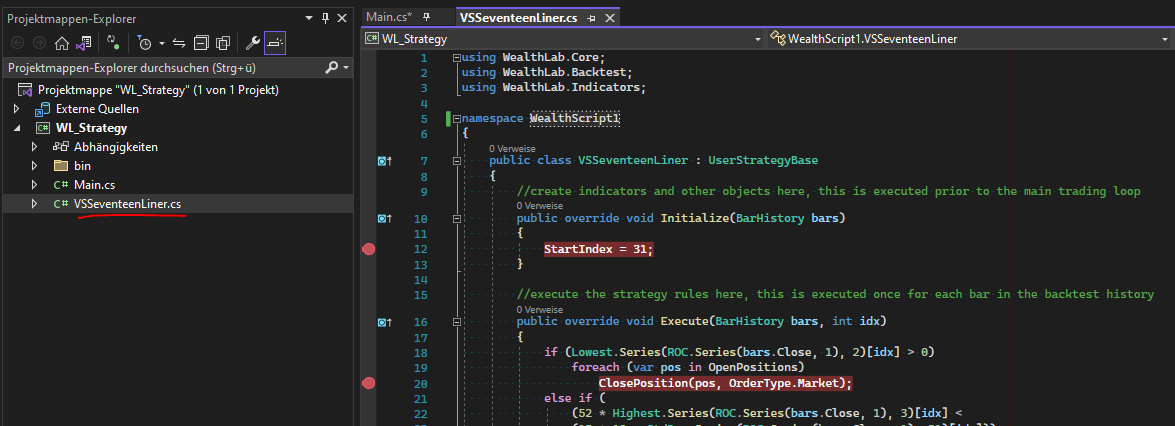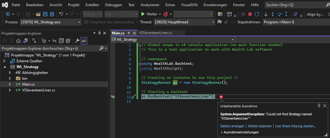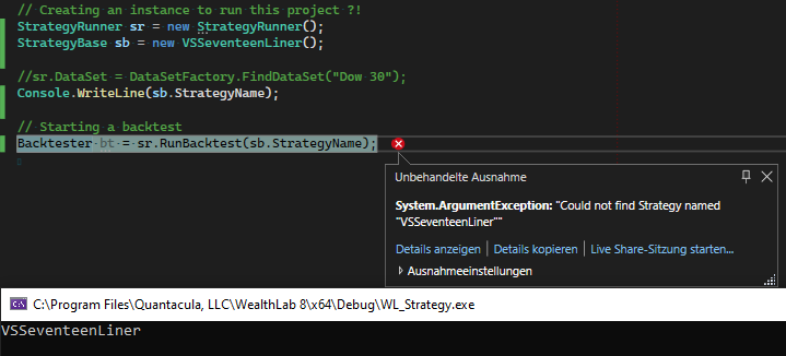 The goal, of course, is to run the strategy with VS so I can debug my code or just have a little more programming comfort.