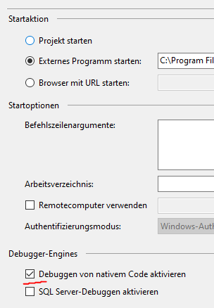 When I start the debugger I get the following message. I have not yet managed to adjust the correct settings for this.