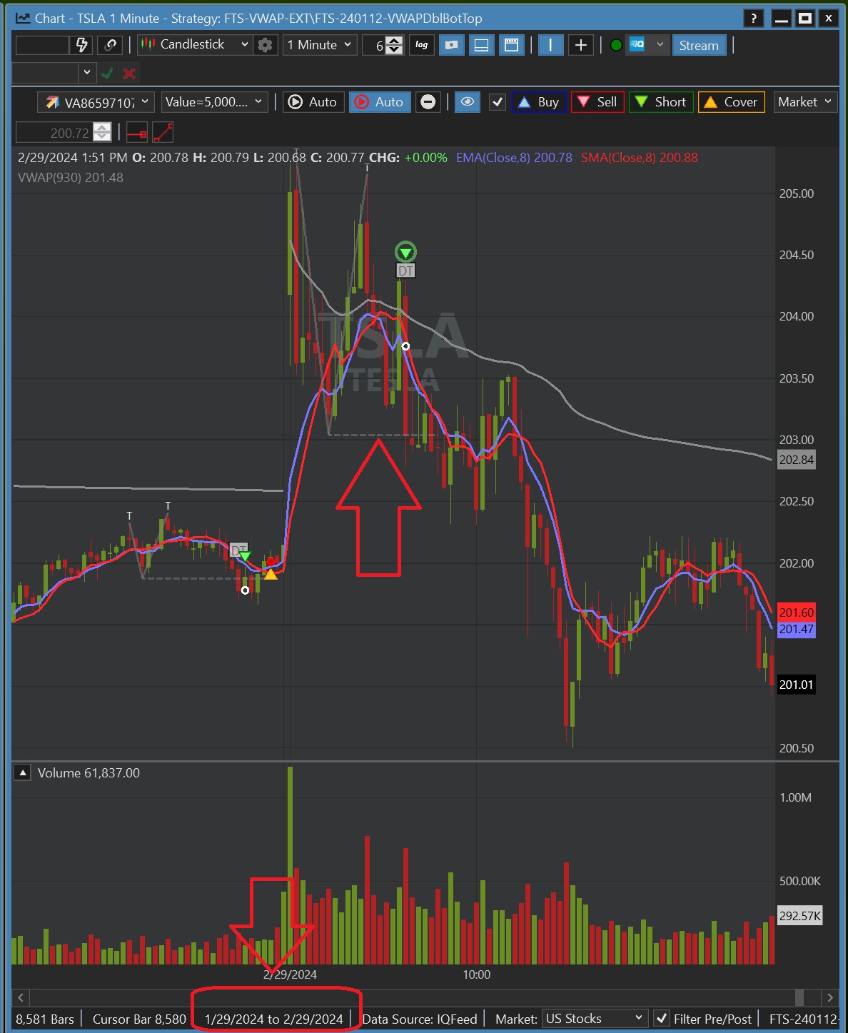 @Cone, I see but If you look at the right live chart the pattern was shown correctly on the previous session (Big Yellow arrows) also the strategy sent the order live as in the backtest version (Big red arrows). It just didn't draw the pattern (Gray plots). I can't figure out why.