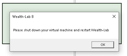 I just installed wealth lab 8 but when launching application, I getting message saying shutdown virtual machine any ideas?