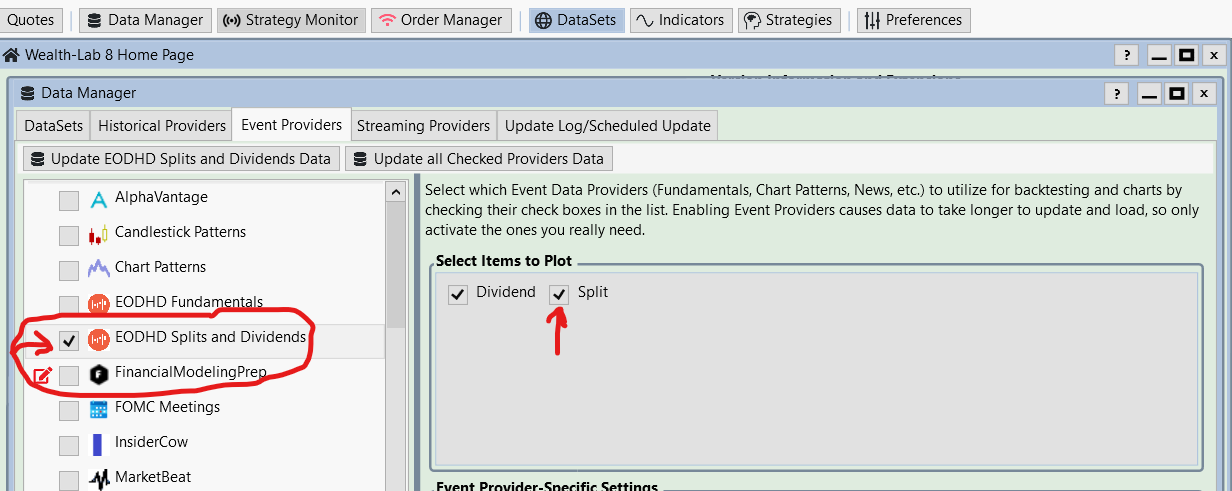 I didn't checked the box in Datamanager -> Event Provioders -> "EODHD Dividends and Splits" and the Items on the right side as well.