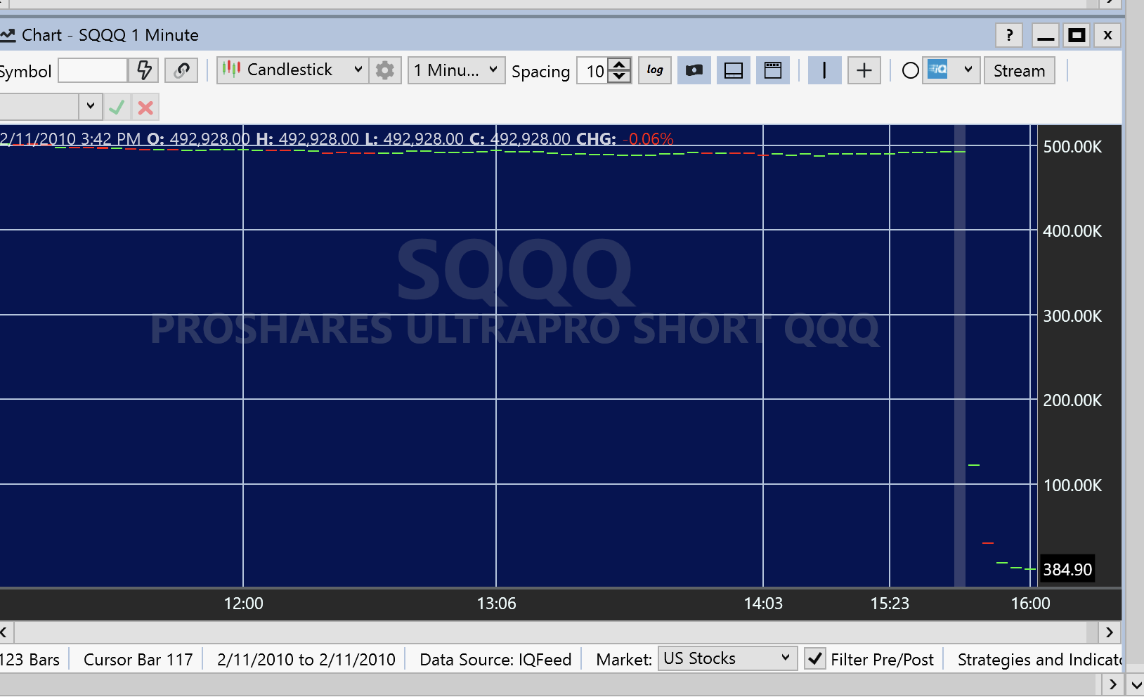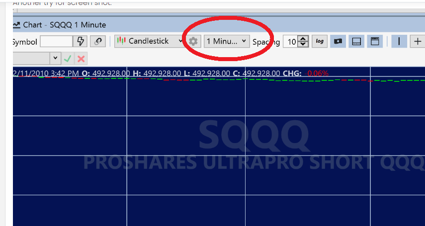 >>Well for whatever reason SQQQ just created a 1 minute chart. Why this happens I have no clue. Very frustrating.<<