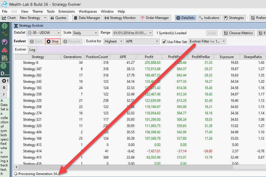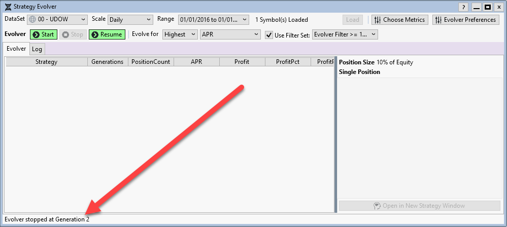Since the upgrade to WL8 B28, the Strategy Evolver pauses always at Generation 2. Is there an Evolver log available to get some more details?