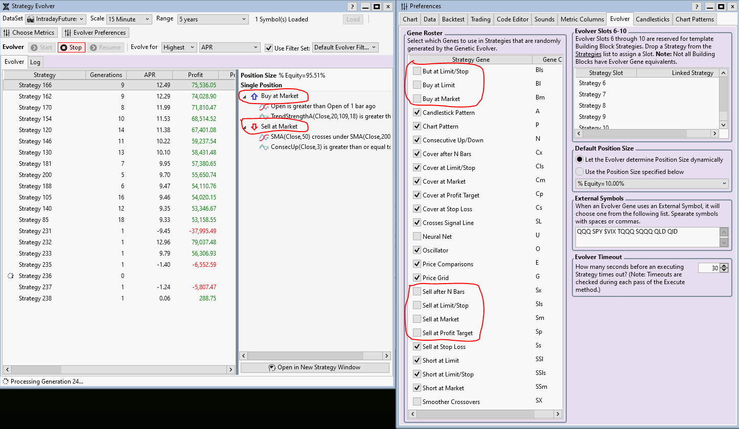 Tried to use Strategy Evolver to create a short strategy. In preferences I removed the checkmarks from the items BUY and SELL. But I still get only buy strategies.