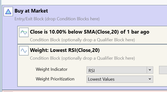 Below is a simple contrived example. Let's say symbols A, B, and C all meet the criteria. A has the lowest RSI, B has the 2nd lowest RSI, and C has the 3rd lowest RSI. So we'd want some way to skip A and choose symbol B instead.