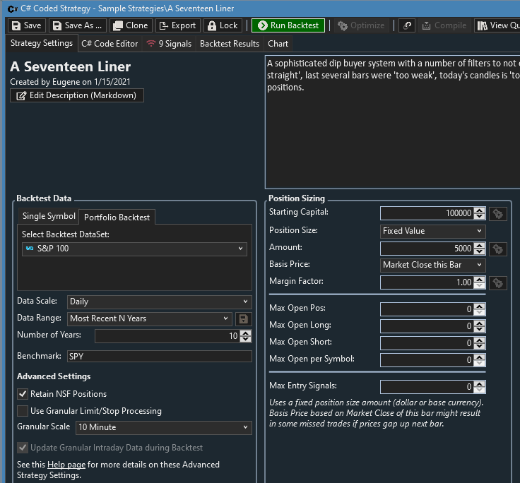 2) Ensure that the settings match EXACTLY in the SM and the Strategy window.