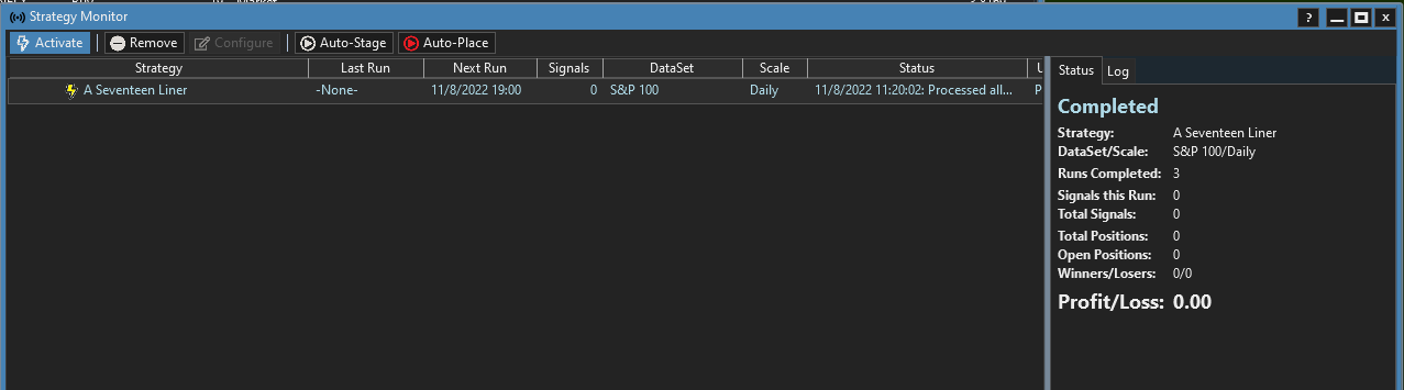 In other words, the S. Monitor is running with data on 11/8 insteady of 11/7 like the Strategy Window.