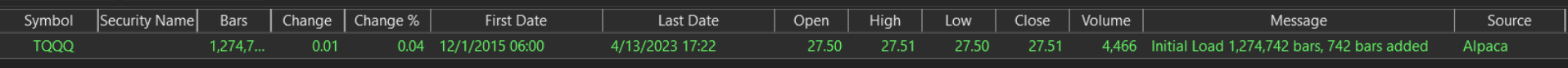 Take a look in the data manager and setup a new dataset with only TQQQ in it and assign have the 'Data Provider Linked' set to TD Ameritrade. Then see if what data it has for the 1-minute scale. But, then don't truncate anything, because TDA really limits how much data you can snag, as noted above.