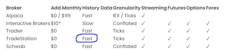 You may want to add a footnote on this one. TS is fast when collecting daily data, but 1-minute bar data collection is super slow.