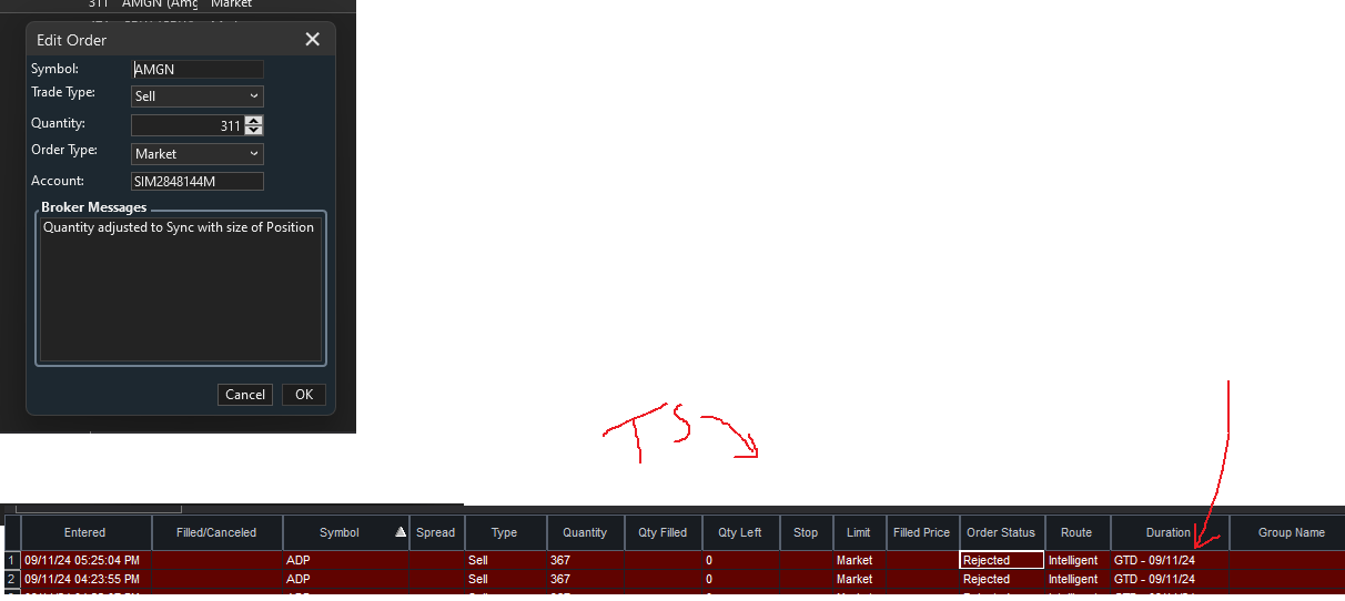 And I see an issue for placing orders after market close, working on a fix for this for Build 3 of the TS extension.