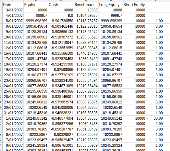 Addendum: My raw data is perfect, but when I copy the WL equity curve and put it into Excel one can see the issue. At the end of each month the month is reverting (it does the same each month). I can't get WL to "like" d/mm/yyy csv data. See the attachment below, and see the end of January. The last column is the difference in dates from one row to the next. Again, the raw data is perfect.