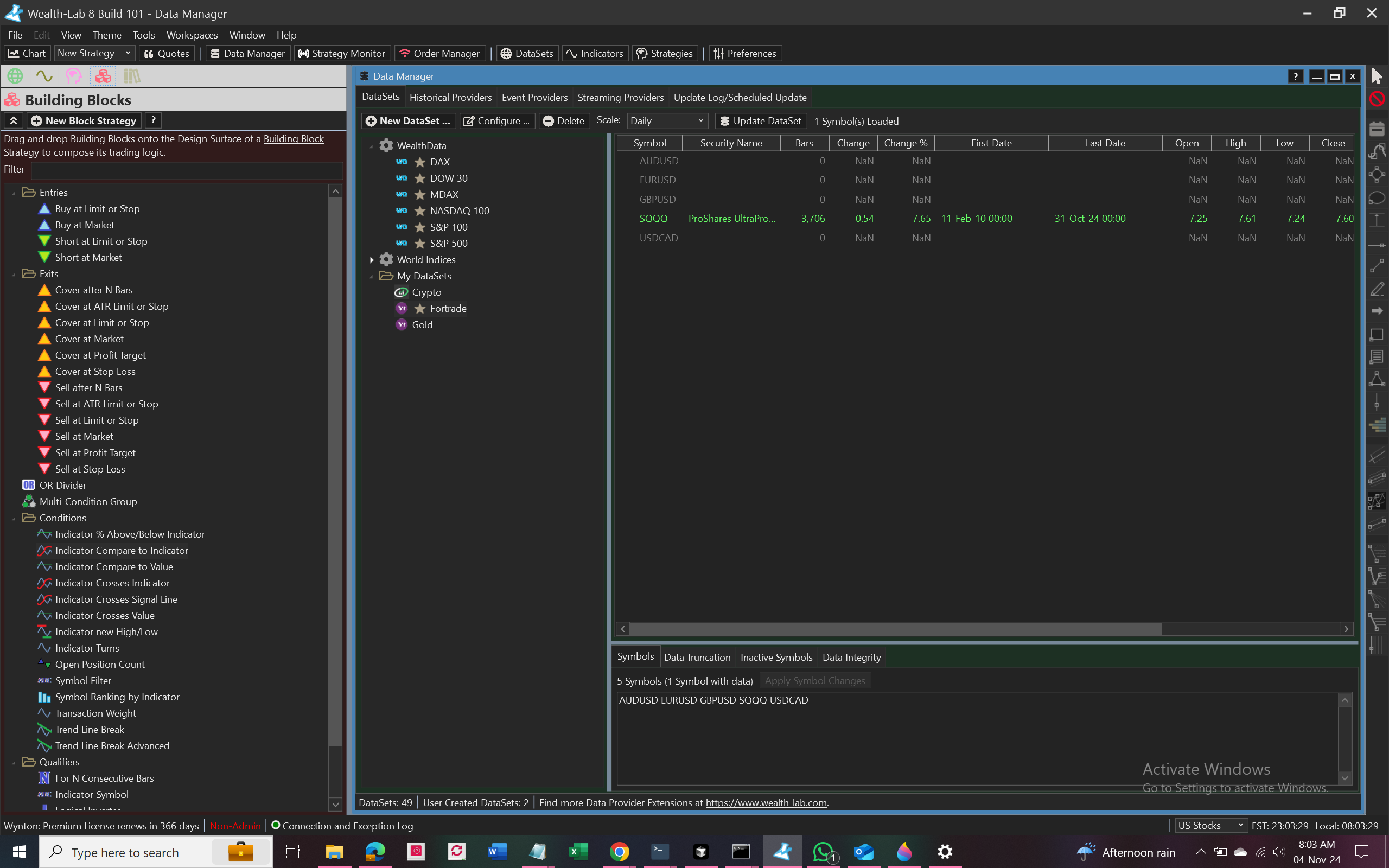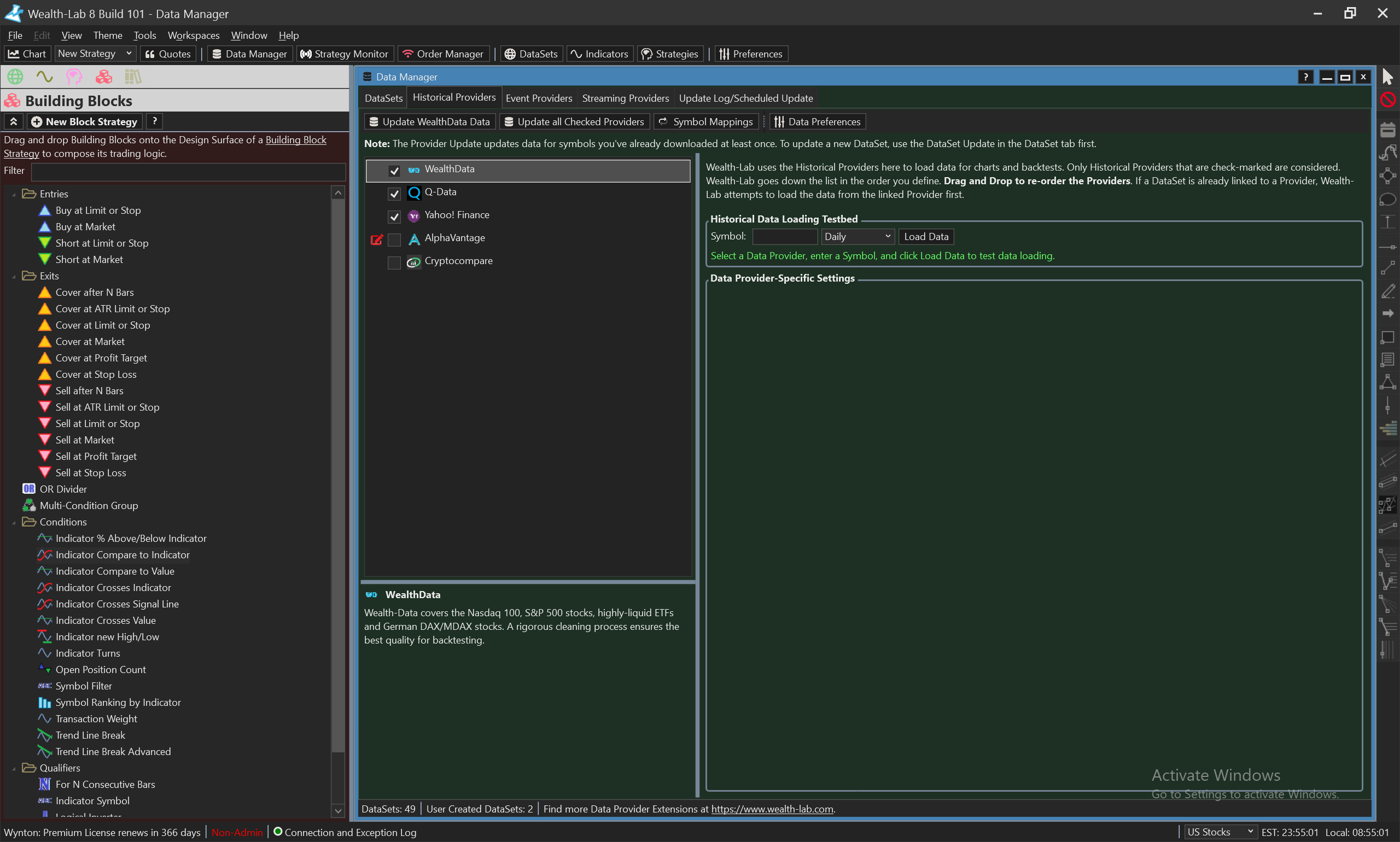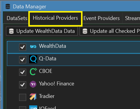 4. Make sure Wealth-Data is in the list of Historic Providers and is checked. I'd recommend that it be right at the top followed by Q-Data, and then Yahoo! below that in this priority list.