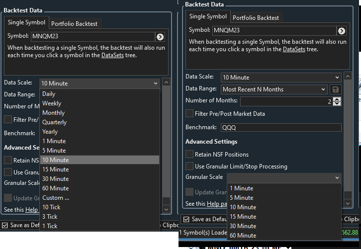 I am also running into abug user error where if I save a strategy with the data scale option of 1 tick, I can no longer select this option under the granular processing menu. This is quite frustrating because to circumvent this problem I need to create a clone strategy and then restart wealth lab each time I wish to edit that strategy.