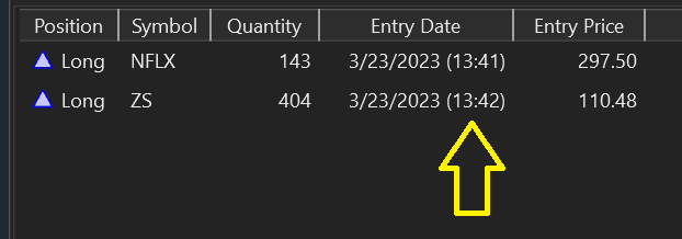 You'll know if you get granular trades by inspecting the Position list and you see Time of Day timestamps in parentheses. Here's a Daily backtest with the granular TODs -