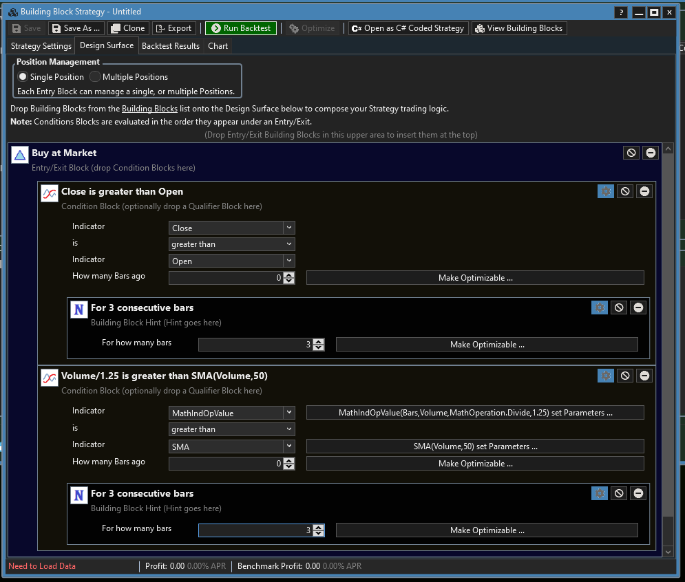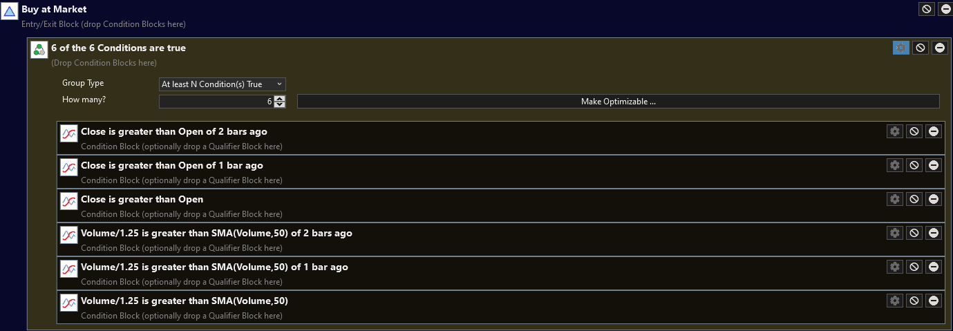 Im trying to write a block based strategy to identify a buy condition as follows: