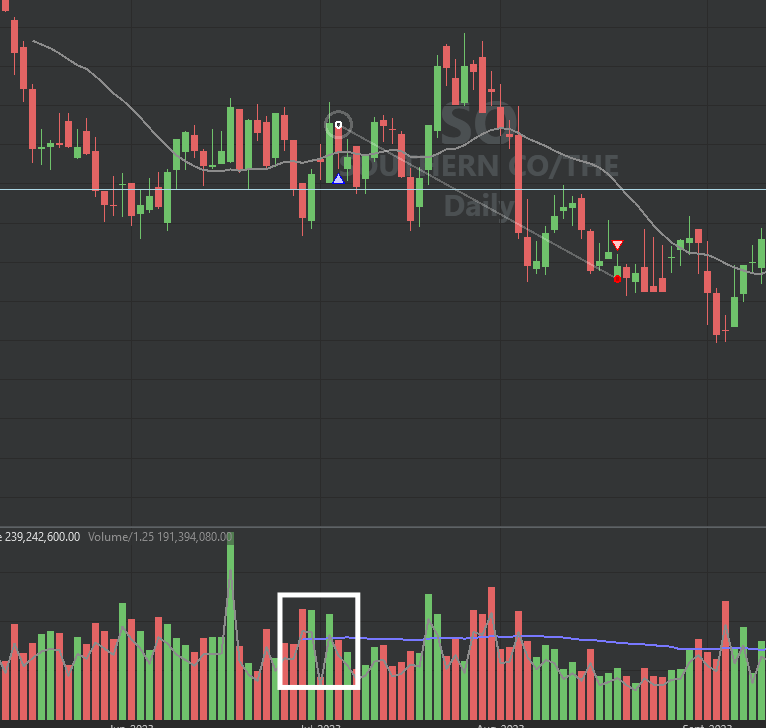 If the previous 3 days volumes / 1.25 are > the 50 day moving average of volume where the closes are greater than the opening prices on each day:
