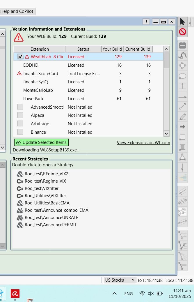 It occured after I had updated 4 of the items immediately below the main WealthLab item.
