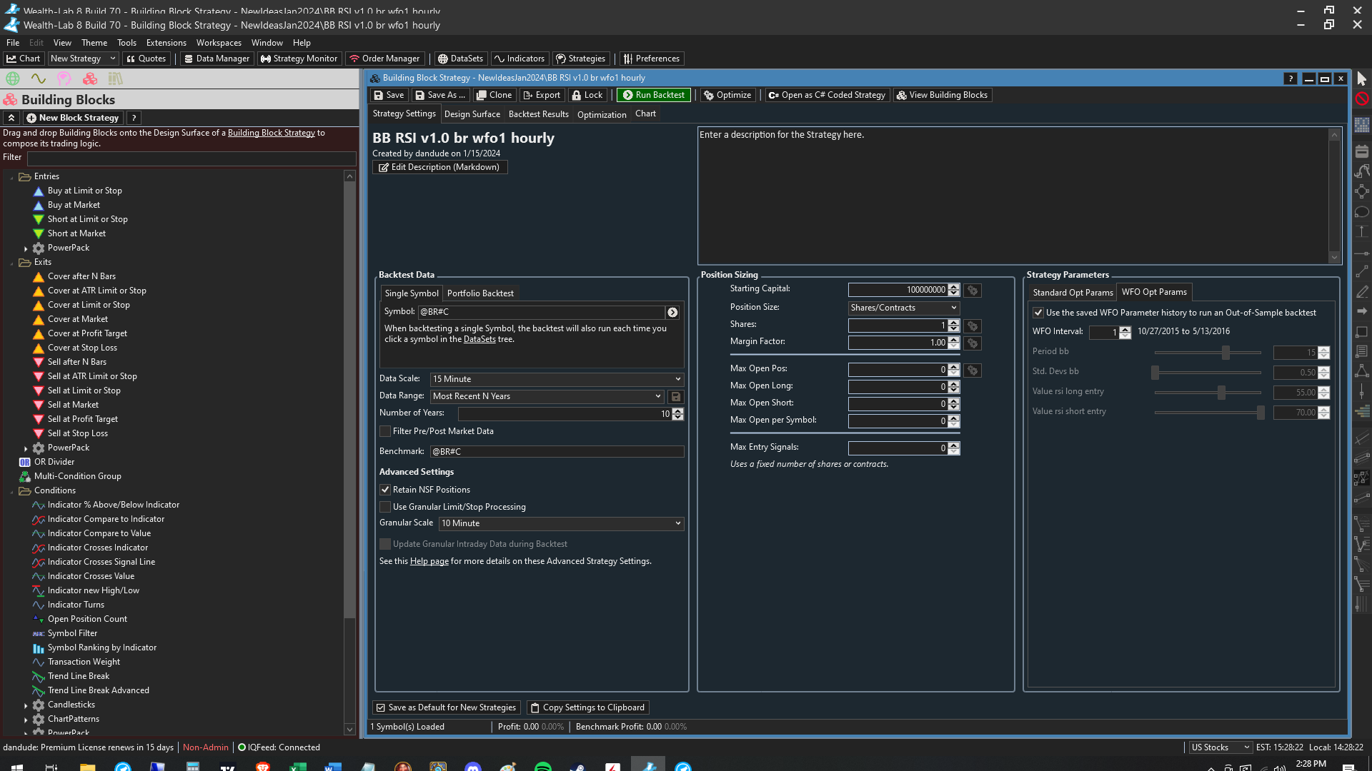 I am working on running a WFO for a particular strategy, and when I click on "Load historical data to see date ranges" I get a wide variety of timespans instead of consistent ones. For example, I would like the time ranges to be 1 year but instead they range from 2 years down to 8 months. Additionally, the dates sometimes won't load the time period or the time period will change (especially if I try to use the WFO date range wizard). Even when using the wizard I can't get it to behave. Sometimes it works and sometimes it doesn't.