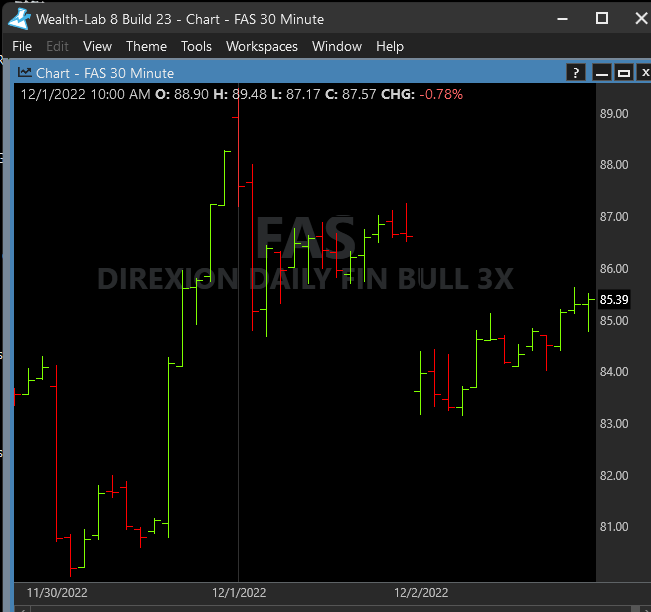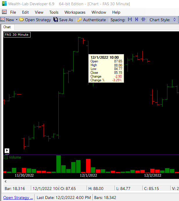 Hi, Included are screenshots from WL8, WL6, TWS, and Yahoo finance. Ticker FAS 30-minute for 12/1 , 10:00 am as an example.