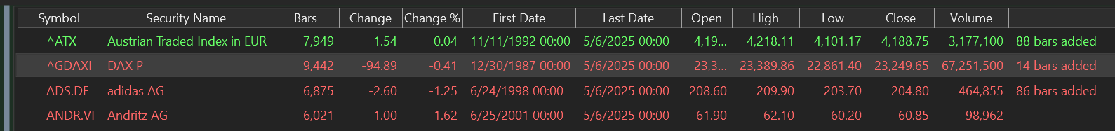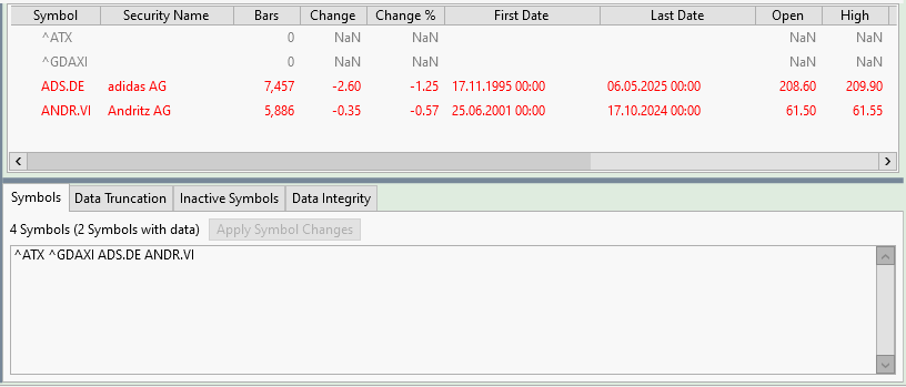 Can you please tell me what is wrong here? Why are for the two indices no data available? Why is for ANDR.VI no current data available?