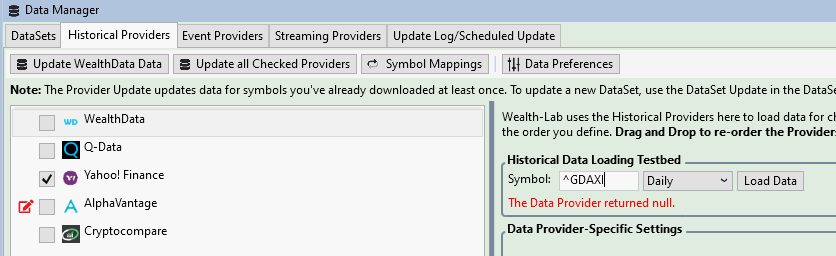 If not, is Yahoo! selected as a Historical Provider?