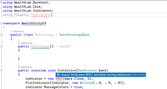 I changed the namespace to finantic.Indicators with the transition to WL8 to make things more consistent and to make "drop indicator to code" work correctly.