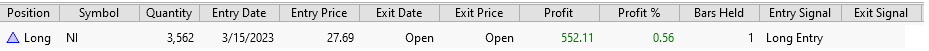Position Detail of NI for Backtest Ending on 15th Mar 2023