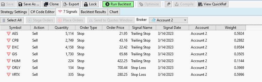 Details of Signal Tab for Backtest Ending on 14th Mar 2023