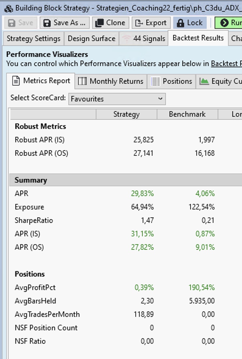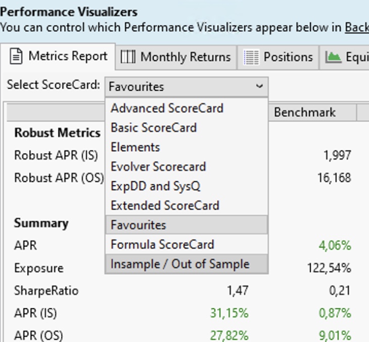 "Favourite Metrics" shows no APR_IS and APR_OS after RunBacktest. After clicking on InSample/OutofSample and clicking back on the Favorites Score Card the APR_IS and APR_OP are shown.