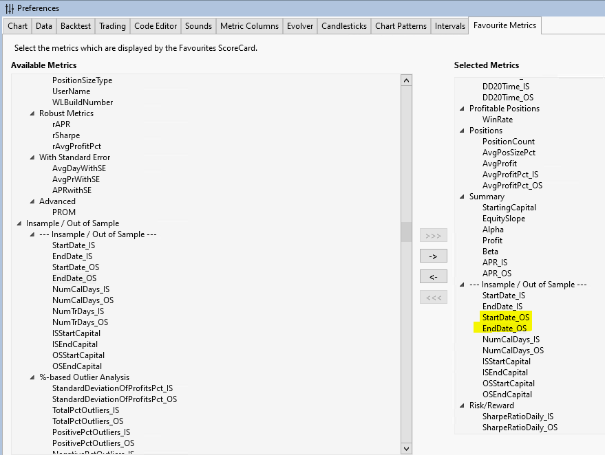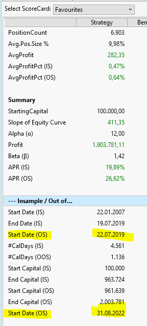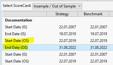 If I want to use the IS and OS functions in WL8 (Build 32), then I get correctly on the ScoreCard Insample / Out of Sample the EndDate (OS) displayed: