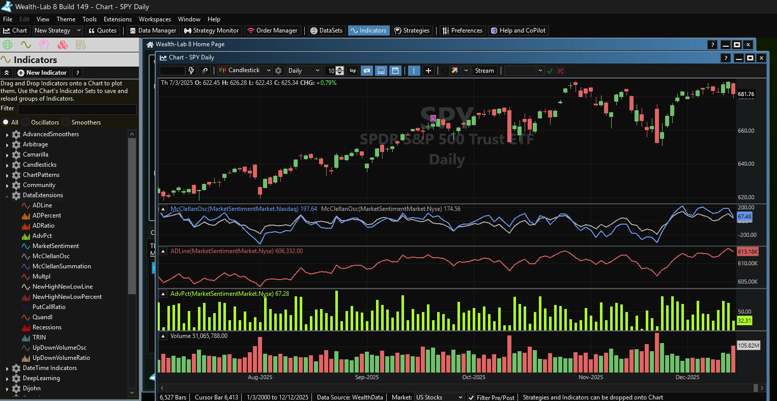 - Added the following sentiment indicators: ADLine, ADPercent, ADRatio, AdvPct, McClellanOsc, McClellanSummation, NewHighNewLowLine, NewHighNewLowPercent, TRIN, UpDownVolumeOsc, UpDownVolumeRatio.